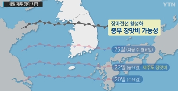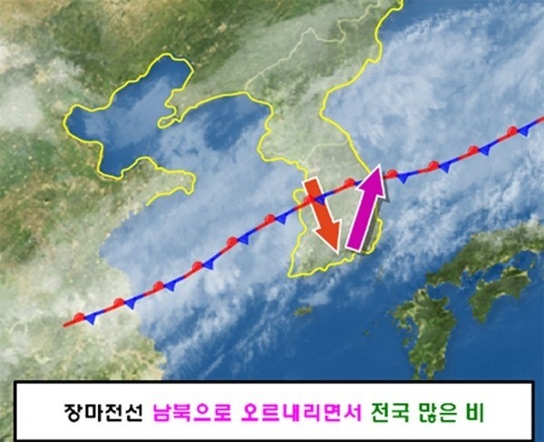 장마전선 북상.오후 충청 이남, 밤 대부분 확대 화요일까지 전국 비 9.